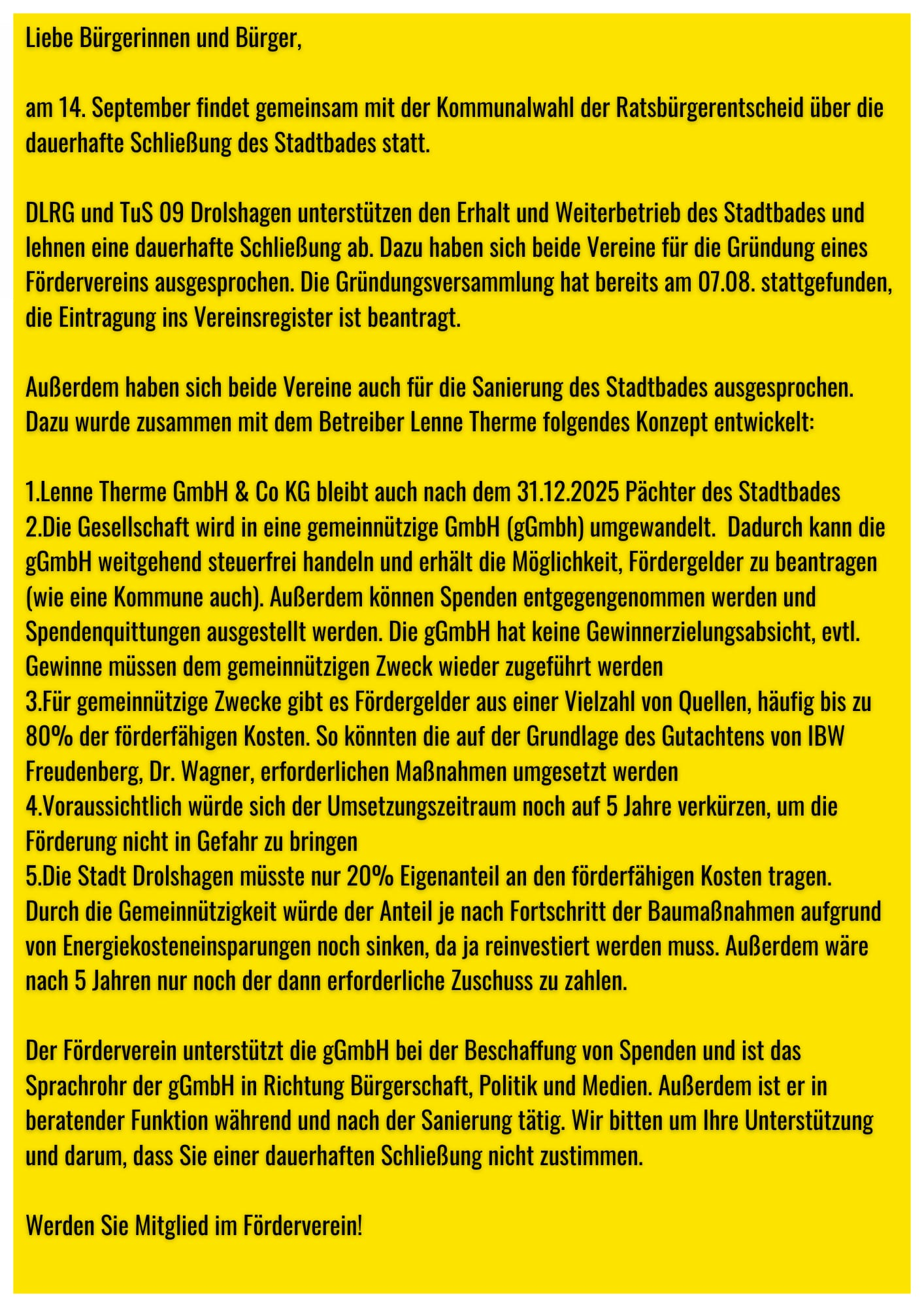Euer Vorstand vom Förderverein Stadtbad Drolshagen
